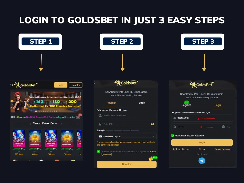 Download GoldsBet app today! It’s very easy, swift, and completely free. Only a few taps and clicks – and a world full of casino and bookmaking options reach your fingertips anywhere, anytime.